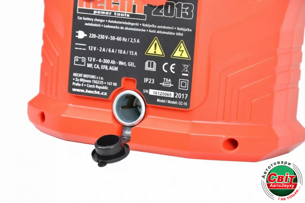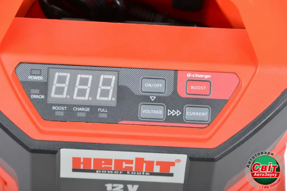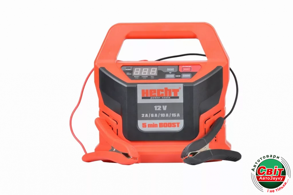 Зарядний пристрій для акумуляторів HECHT 2013Портативний зарядний пристрій підходить для всіх стандартних 12-вольтних пристроїв. Він має чотири рівні зарядки до 15 А. Акумулятори наступних типів можуть заряджатися від 4 до 300 Ач: вологий, GEL, MF, CA, EFB і AGM. Практичні світлодіодні індикатори на чітко організованому дисплеї надають інформацію про стан заряду.