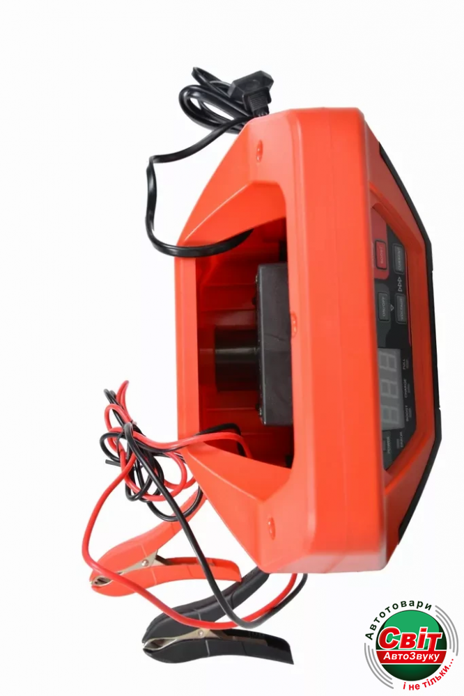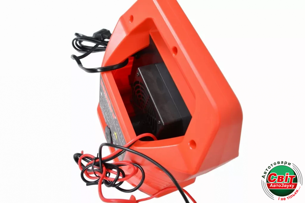 Оснащений вбудованим захистом від короткого замикання і захистом від зворотної полярності. Після використання запобіжні затискачі і троси можна швидко прибрати в практичний відсік для зберігання. На задній панелі пристрою знаходиться гніздо 12 В.