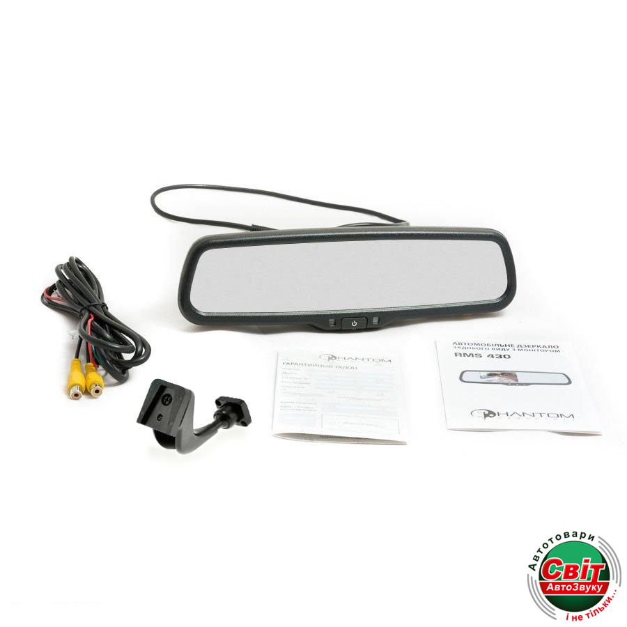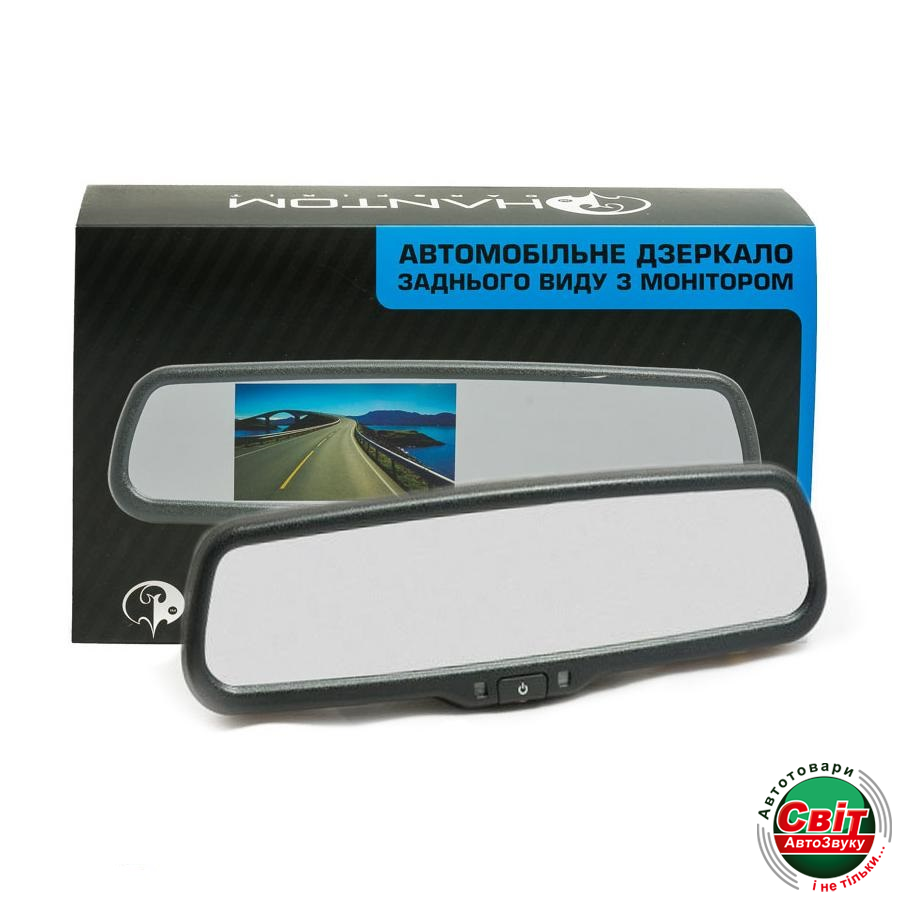 Дзеркало з монітором Phantom RMS-430-6Phantom RMS-430-6 имеет превосходную зеркальную поверхность и встроенный монитор 4,3′ для отображения сигнала с видеокамеры заднего вида. Яркий и контрастный монитор обеспечит в любое время суток прекрасную картинку на экране. Такое решение позволит водителю видеть то, что невозможно увидеть через салонное зеркало заднего вида или боковые зеркала и тем самым значительно повысить свою безопасность, собственного автомобиля, безопасность пешеходов и окружающих транспортных средств.