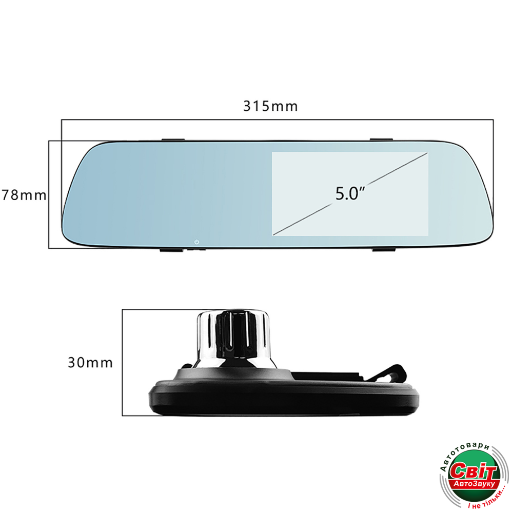 Великий, IPS екран 5,0 дюймів, з легкістю дозволить зробити необхідні налаштування відеореєстратора і переглядати зняті матеріали.