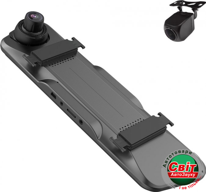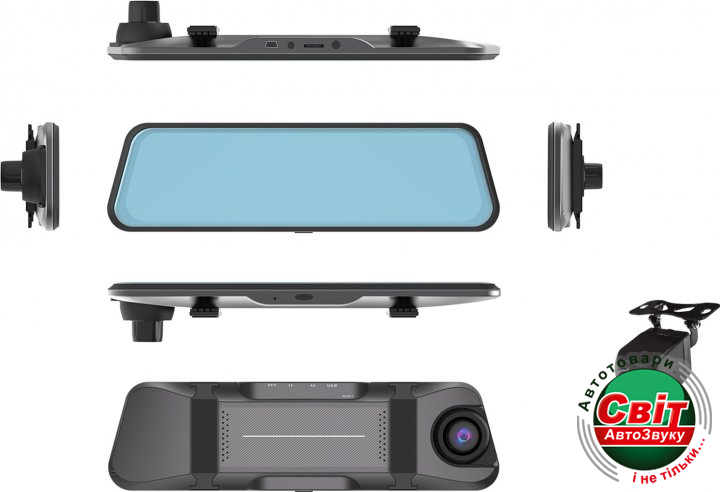 Дисплей на всі дзеркало заднього виду 9.66 дюймів. В комплектації є універсальні кріплення, які допоможуть встановити реєстратор на будь-який штатний автомобільне дзеркало заднього виду.