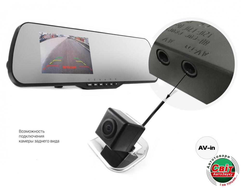 • 160 градусный широкоугольный объектив.• Видео высокого разрешения 1920х1080р FULL HD.• Передовая технология компрессии видео H.264• 4.3 'LCD-дисплей• Видеовыход высокой четкости HDMI и AV-OUT• Видеовход предусматривает подключение камеры заднего вида• Три опции разрешения записи• G-сенсор• Функция циклической записи без потери данных.• Поддержка карт Micro SD до 32GB