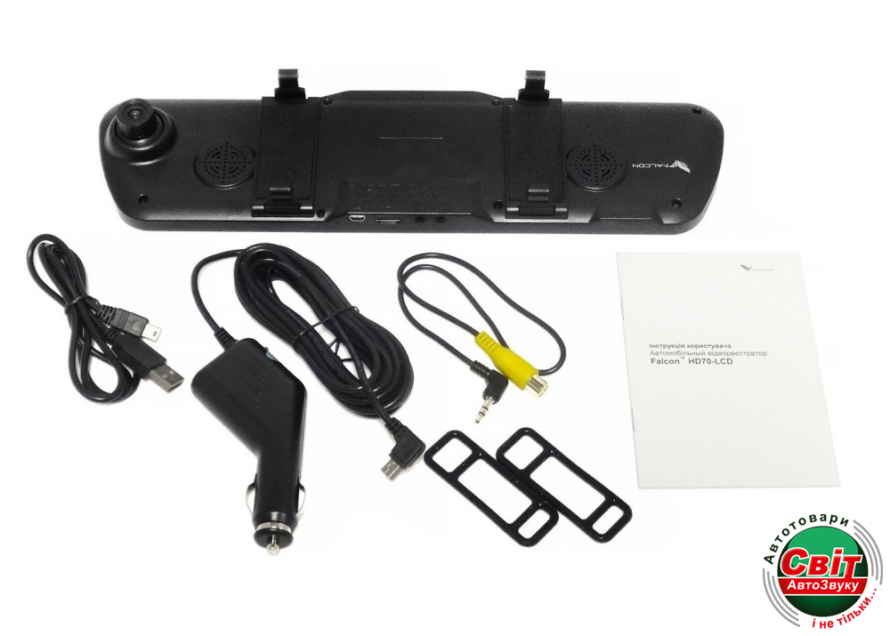 Дзеркало з відеореєстратором Falcon HD70-LCDFALCON HD70-LCD легко крепится на зеркало заднего вида и выполняет функции зеркала и видеорегистратора 2 в 1. FALCON HD70-LCD записывает видео в Full HD и обеспечивает высокую четкость картинки. FALCON HD70-LCD cпособен отобразить большее количество деталей даже в условиях низкой освещенности. При этом у Falcon HD60-LCD есть экран 4,3’’ для просмотра всего записанного видео без необходимости подключения дополнительного кабеля, а так же для сигнала подключеной камеры заднего вида.