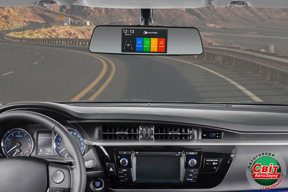 Дзеркало з відеореєстратором Phantom RM-55 DVR Full HDPhantom RM-55 DVR Full HD представляє собою салонне дзеркало заднього виду з вбудованим сенсорним монітором 5,5#8242;#8242; і двоканальним відеореєстратором.